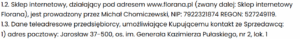 1.4. Regulamin sklepu internetowego Florana umieszczony jest nieprzerwanie na stronie
